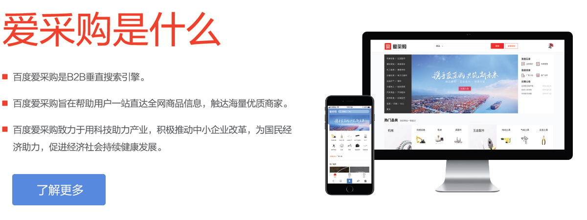 百度爱采购 是百度旗下的B2B垂直搜索引擎,帮助用户直达商品信息和优质商家,为买家提供了搜索商品,搜索厂家,全网询价,指定商家询价,查看报价等功能,全方位服务买家。